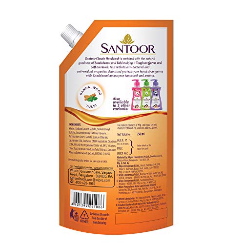 Specification: Santoor Classic Gentle Hand Wash, 750ml with Natural goodness of Sandalwood & Tulsi