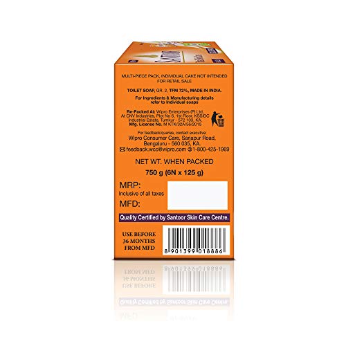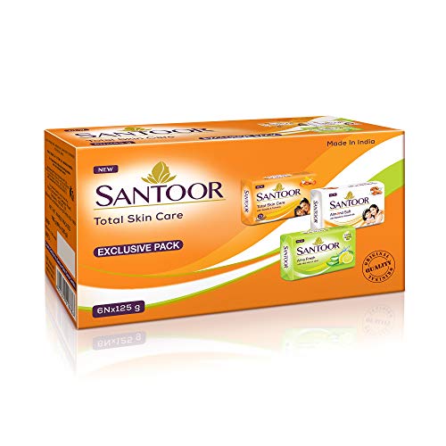 Specification: Santoor Total Skin Care Soaps (Sandal, Almond, Aloe Fresh Soaps combo), 125g (Pack of 6)