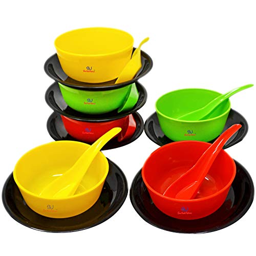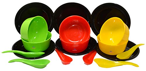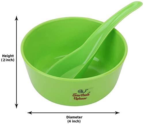 Specification: Sarthak Uphaar Plastic Solid Bowl, Spoon, Plates – 280ml, Set of 18, Multicolor