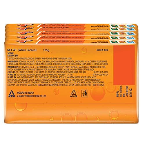 Specification: Savlon Moisturizing Glycerin Soap Bar With Germ Protection, Pack Of 5-125G Each