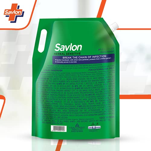 Specification: Savlon Herbal Sensitivel pH balanced Liquid Handwash Refill Pouch, 1500ml, Fresh, 1.5 l (Pack of 1)