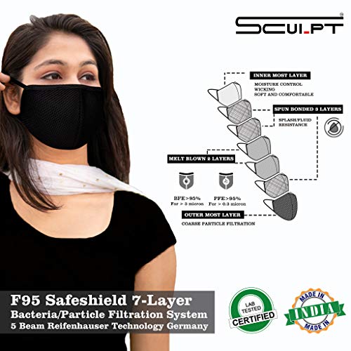 Sculpt Standard Size Mask for Adult Color Black F95 Safeshield 7 layer ISO CE lab certified >95% Bacteria Filtration…