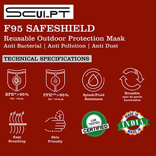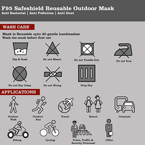 Using the technology, we have designed this reusable outdoor enhanced layer bacteria/ particle filtration system Safeshield F95 mask, which saves you from harmful gases, harmful odours, pollen, smoke, dust and all other harmful bacteria and particles, when stepping out It is a Unisex design and can be worn by both men and women. Wash before use.
