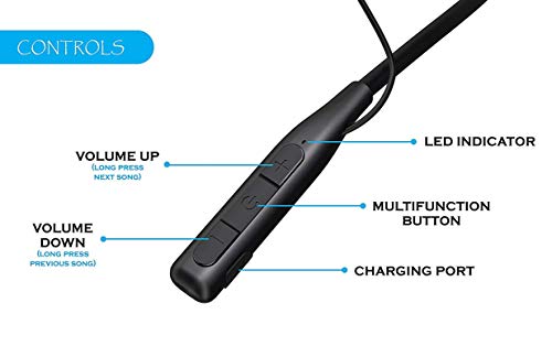 HANDS-FREE CALLING :: It Features a one touch incoming Call receive Functions from up to 30 Feet Distance. The Earphone has Song Selection , Play / Pause Function and Call Receiving Controller.