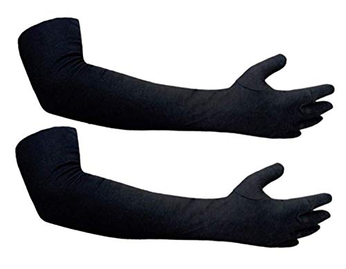 Shoppyana Men’s and Women’s Cotton Hand Summer Gloves for Protection From Sun Burn/Heat/Pollution (Black, Free Size) Care Instructions: Hand Wash Only Product Type : Arm Sleevs Material : Cotton Package Contents : Pack Of 1 Pair