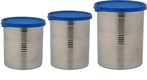 Signoraware Modular Steel Container Round 1000+1500ml+2000ml, Set of 3, MOD Blue