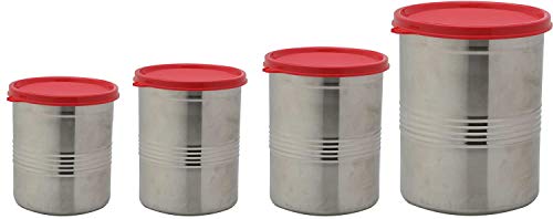 Signoraware Modular Steel Container Round 1000+1500ml+2000ml+6100ml, Set of 4, Red