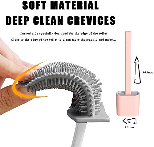 Reliable and convenient :- the brush head is made of silicone material, soft, strong and dense, not scratch the toilet and not easy to deform, the handle is made of plastic, sturdy and comfortable to hold; The 360-degree design of makes it easy to remove spots and stains, cleaning, and the large bristle makes it less prone to tangling hair and other dirttoilet brush holder|bathroom cleaning|bathroom gadgets|washroom accessories for toilet