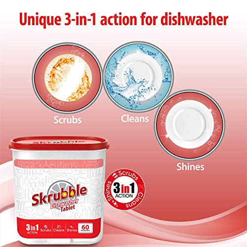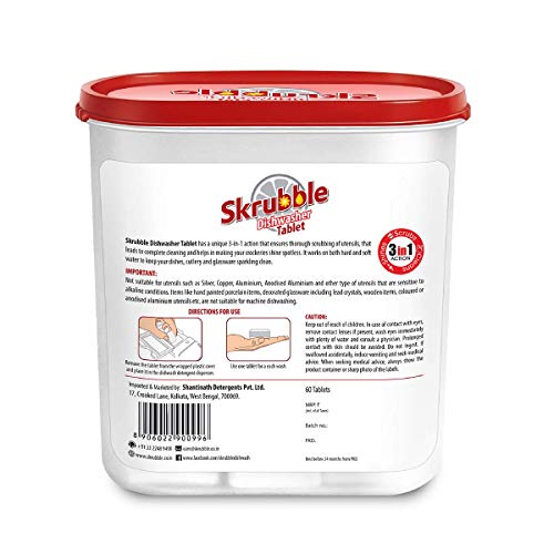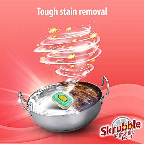 Skrubble Dishwasher Tablet has advanced 3-in-1 action that helps ensure in your dishwasher thorough scrubbing of utensils, leading to complete cleaning with spotless shine