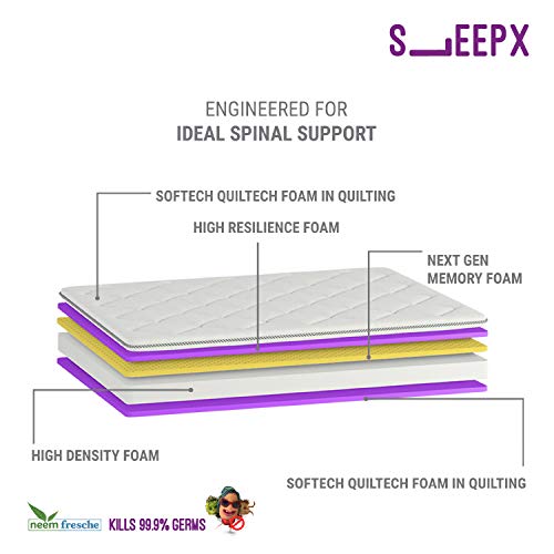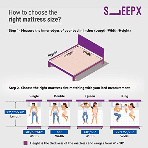 Specification: SleepX Ortho Plus Quilted 6 inch King Bed Size, Memory Foam Mattress (Purple, 78x72x6)