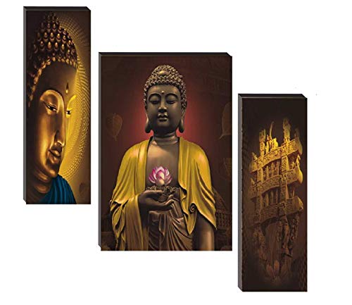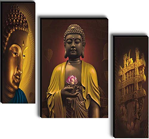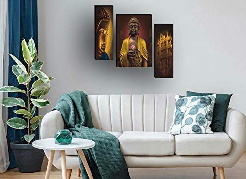 About this item PACKAGE CONTENTS: Set of 3 lord buddha Matte Textured Self Addeshive UV Coated 3D MDF Framed Painting With A Special Free Gift
