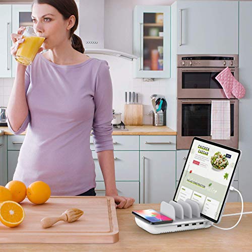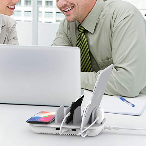 SooPii Premium 60W 5-Port Charging Station with 10W Wireless Charging Pad, 1 USB-C Port with 18W Power Delivery…