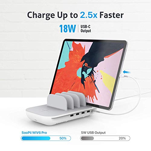 Specification: SooPii Premium 60W 5-Port Charging Station with 10W Wireless Charging Pad, 1 USB-C Port with 18W Power Delivery…