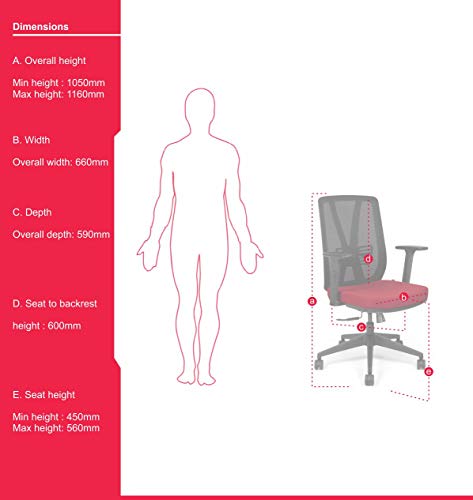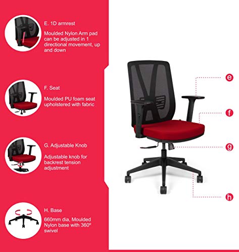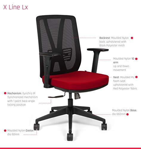 Specification: SOS Spacewood LiteOffice Xline LX Mesh Back Nylon Base Ergonomic Office Chair (Red)