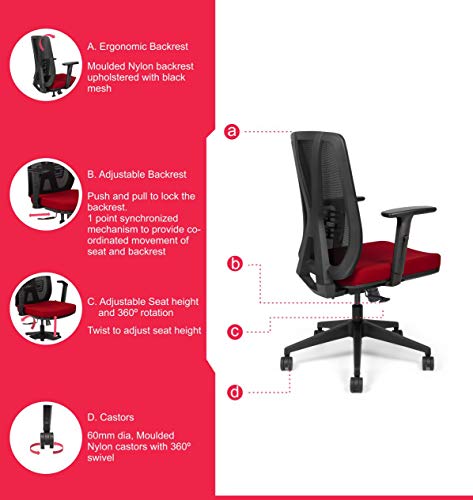 SOS Spacewood LiteOffice Xline LX Mesh Back Nylon Base Ergonomic Office Chair (Red)