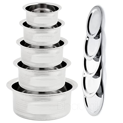 Specification: Bhaumik Stainless Steel tope Set with lid Container Set/Tope Set/tapeli/patila/Milk Pot pan/Handi Set Cookware Set…