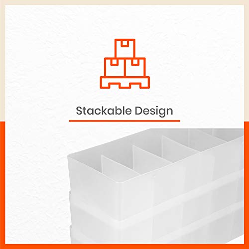 Stackable: Each drawer and shelf organiser can be stacked either sided-by-side in drawers or one on top of another on shelves as per your convenience. Stackable: Each drawer and shelf organiser can be stacked either sided-by-side in drawers or one on top of another on shelves as per your convenience.