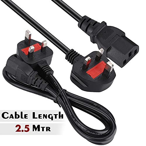 Storite 2.5M Standard Uk Power Cable With Fuse, 3 Pin Iec Mains C13 Computer Power Lead For Desktop Pc, Tv, Printer…
