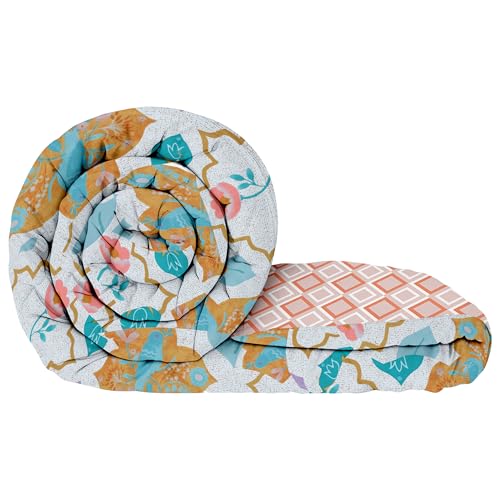 Story@Home Comforter Single Bed,Lightweight Comfort and Breathable Sleep Reversible Blanket, 1 Fusion Reversible Single Comforter | Teal & White|180 GSM | 150 cm X 225 cm