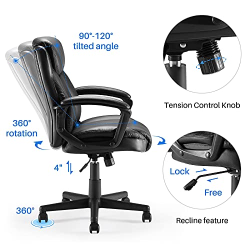 Sunon Office Chair Wide Seat Padded PU Leather Chairs Computer Chair Executive Chair, Adjustable Mid Back Chair with…