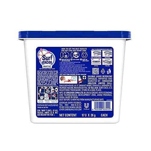 Specification: Surf Excel Matic 3 in 1 Smart Shots 17 pcs, Laundry Detergent Pods for Tough Stain Removal in Front Load & Top Load…
