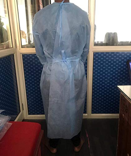 Specification: SURGICOMFORT Disposable Surgical Isolation Gown (1 Pcs, Length-48inch, Color-Blue, Knitted rib), 40 Gsm Non Woven…