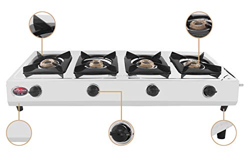 Specification: Surya Flame Capri 4 Burner Stainless Steel Gas Stove Auto Ignition Comes with 4 Brass Burners & Pan Support With 2 Years…