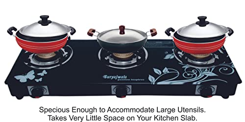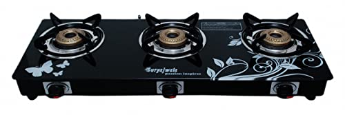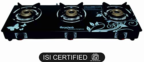 Specification: suryajwala Auto Ignition Toughened Glass Cast Iron 3 Burner Gas Stove (LPG Compatible Only)Ignition, Black