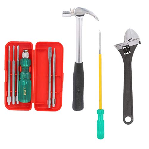 Advance Home Kit 5-Pieces Screwdriver Kit (Multicolour) & Adjustable Wrench (250 mm) & Claw Hammer Steel Shaft & Two in One Screw Driver (Green & Yellow)