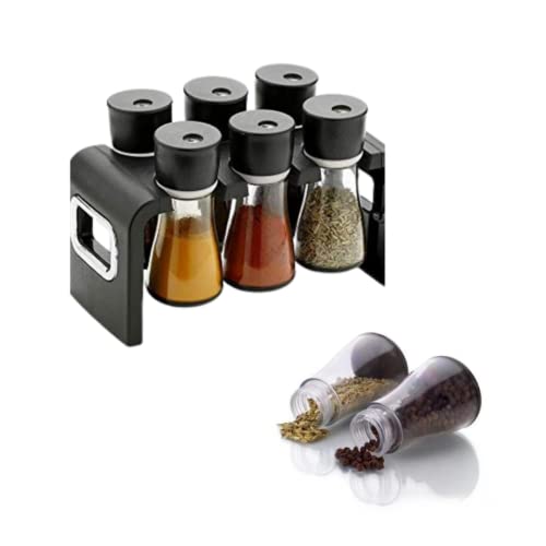 6 bottles abs material which Property Is Shock Proof and Unbreakable. Multipurpose Revolving Spice Rack With 6 Dispenser Containers. Package Included: 6 Dispenser Containers(Each 300 ml) with Stands(Rack)