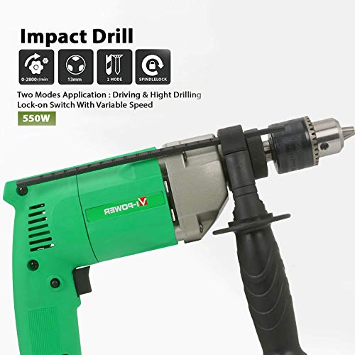 Suzec VI Power 13MM 600W, 50Hz 220V Impact Drill, Chuck Size 13mm, Green (VP EID13)