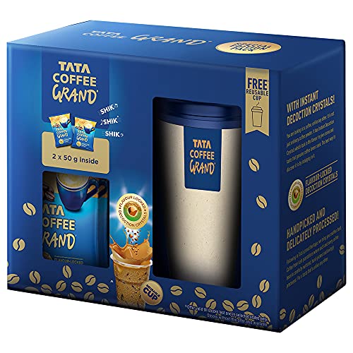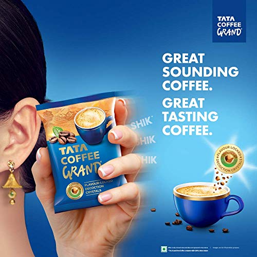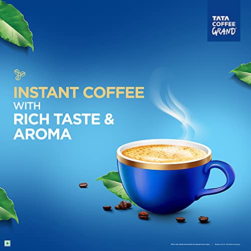 Tata Coffee Grand leverages the deep heritage of Tata in coffee and has created a product that is a first of its kind innovative offering in the Indian market. The product is a blend of the finest coffee powder & “flavor locked decoction crystals” which gives consumers a ‘best in class’ taste experience in the instant coffee category. Tata Coffee grand is an intensely rich, fresh and aromatic coffee.. Usage: Add 1 teaspoon of Tata Coffee Grand into a cup. Add 100 ml of hot milk and/or water. Add sugar to taste, stir well to enjoy a great cup.