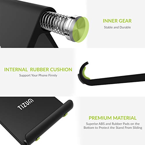 Tizum multi-angle stand for tablets, mobile phones, E-readers and game consoles Tizum multi-angle stand is designed to hold 4inch-10inch e-readers, tablets, smartphone and game console. The multi-angle stand provides a convenient alternative to hold handheld devices. The stand allows for a comfortable hands-free use for reading books, video streaming and playing games. Multi-angle viewing The stand is adjustable in various angles, which gives it the right tilt to enhance viewing experience. Press the button on the sides and adjust the stand to the desired position. Releasing the button will lock the angle. Usability The stand comes with rubberized under sides to protect phones from scratching and slipping. Solid-built can hold up to 11 pounds of weight. The stand weighs only 155gms and its compact design keeps it completely portable. Plastic stand with multi-angle foldability, provides seamless viewing angle. Light weight helps for easy portability. Learn to prepare awesome new recipes. Place the stand in the kitchen to watch videos conveniently while cooking Holds Nintendo switch console for the perfect gaming experience Desk stand for iPad, holds iPad conveniently for easy working Provides hands free reading for Kindle readers Cell phone compatibility: iPhone 7/8Plus, iPhone 8/7, iPhone X, galaxy S9/S9Plus tablet compatibility: Fire HD8, Fire HD 10, Fire 7, Surface pro, Samsung Galaxy tab iPad compatibility: iPad pro10.5, iPad pro, iPad mini, iPad mini 4, iPad mini2, iPad air Gaming Console compatibility: Nintendo Switch.