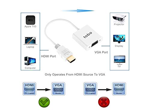 Specification: Tobo HDMI to VGA Adapter, HDMI Converter Compatible with PC, Monitor, Projector, HDTV, Xbox and More-TD-475H.