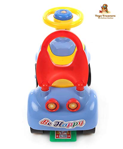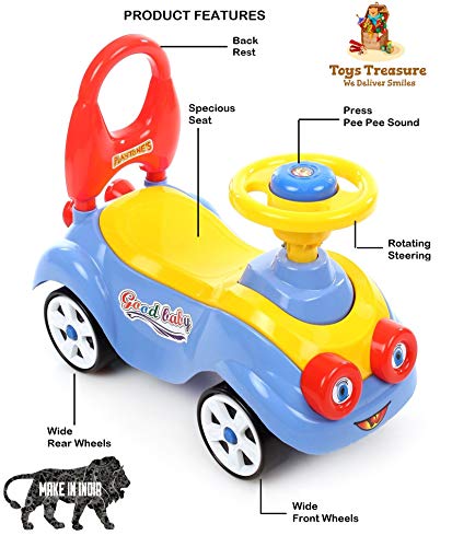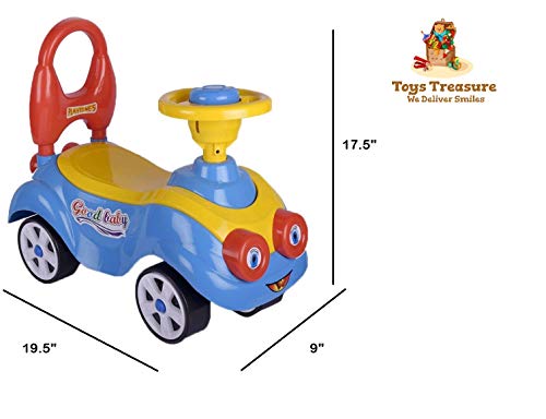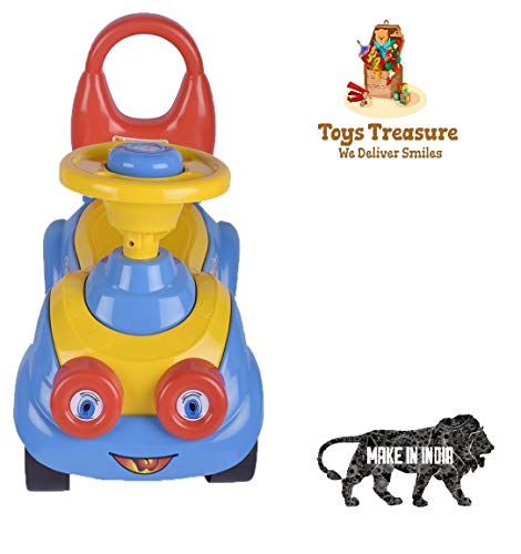This ride-on-car features a car steering with horn and musical tunes with lights that keep the baby indulged in hours of active play. This smart mini ride on aims to create comfortable and luxurious outdoor and indoor fun playtime for kids. It is designed in bright colours with smooth corners and edges. It has a comfortable and broad seat will provide hours of fun playtime to your little one. Toys Treasure ride-on comes with high backrest for your kid’s tender back. It is a great toy for enhancing arm & leg coordination and balancing. Crafted from Quality virgin plastic material which makes it an ideal pick for kids. Let your little ones control the steering and enjoy the unstoppable ride with this Toys Treasure kids cartoon ride on. This makes up for a great gifting item for the kids and is durable enough to last for generations!.