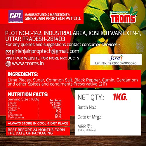 Specification: Troms Nimbu Khatta Metha Pickle Jar, 1000 g