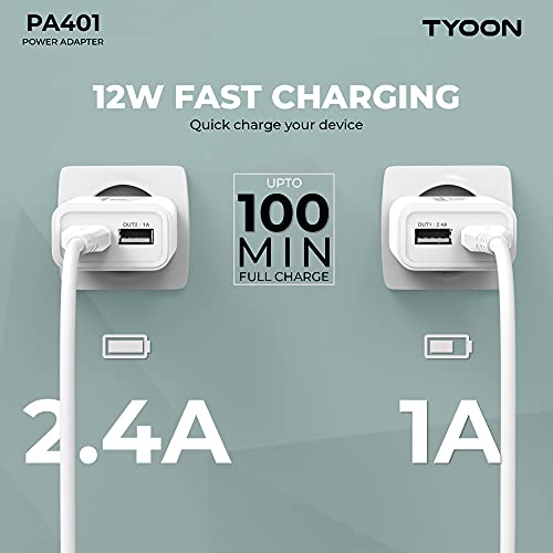 TYOON PA401M 2.4A Universal Fast Charging Dual USB Wall Adapter with Micro USB Cable (White)