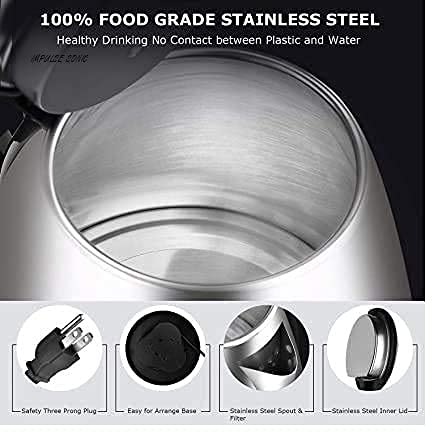 HIGH DURABLE Electric KETTLE :– The handle is made from safety Plastic material that it helps to prevent burns while handling the water kettle.