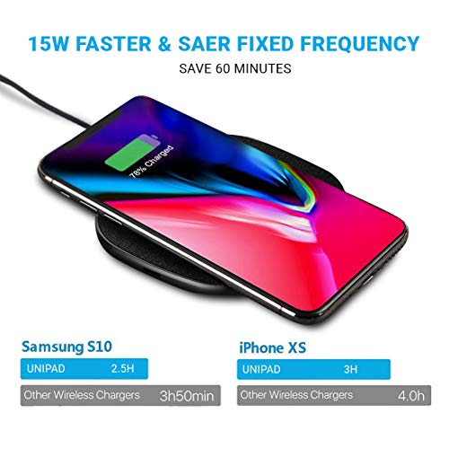 【Safer and Easier to USE】Exclusive Multifunctional Intelligent Protect Technology provides temperature control, surge protection, short-circuit prevention. Besides that, this wireless chargers is Qi-certified, made of ABS Material which is fire-resistant, and has a UL Certificate, you can purchase it at assurance. Double guarantee and dual safety provide you safety experience. To get better experience, we would like you to take off the phone case and use the adapters recommended (NOT INCLUDED).
