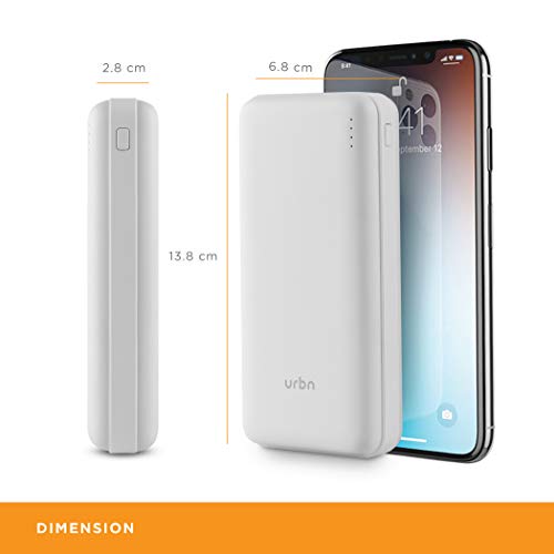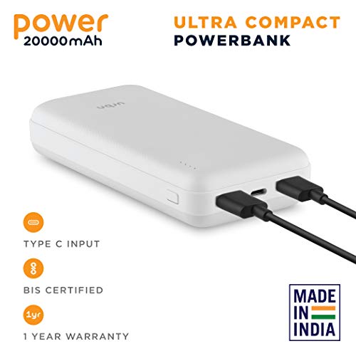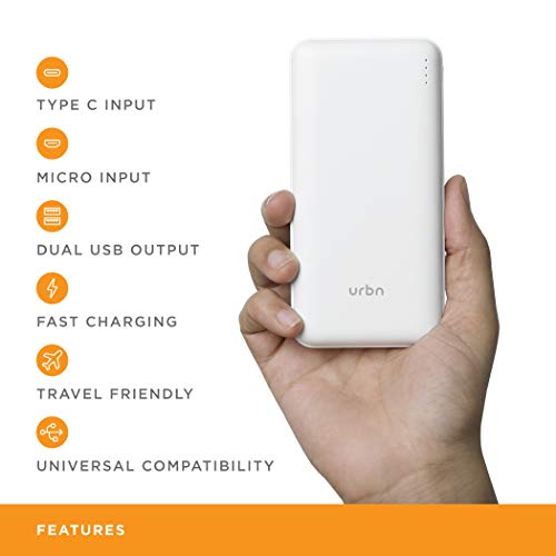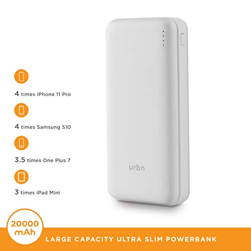 URBN 20000mAh Li-Polymer Compact Type-C Power Bank with 12W Fast Charge, Type C & Micro Input (White)