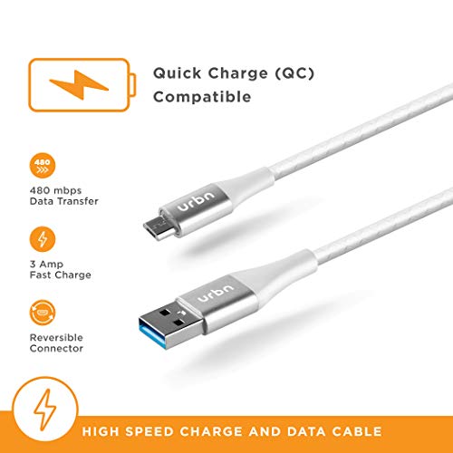 Specification: URBN Micro USB 3 Amp Fast Charging Data and Sync Cable Extra Tough Quick Charge 18W Compatible (4 Feet) 1.2M – White