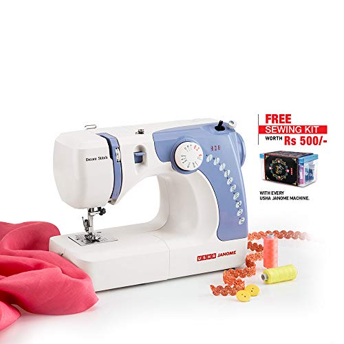 Specification: Usha Janome Dream Stitch Automatic Zig-Zag Electric Sewing Machine with 14 Stitch Function (White and Blue) with Free…