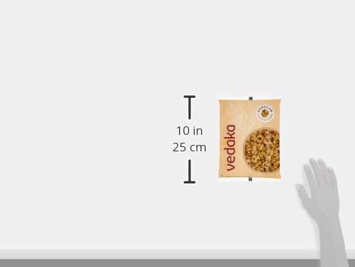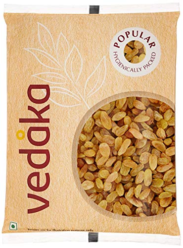 Vedaka brings to you high-quality regular-sized raisins with a sweet fruity taste and a soft chewy textyure. They are packed in a food-safe polybag to keep them safe in the journey to your home. These raisins are packed in an integrated nuts & dried fruits unit and may contain occasional traces of other nuts & dried fruits. May contain an occasional stem/ stalk Store in a cool, dry place in an airtight container and preferably refrigerate after opening.