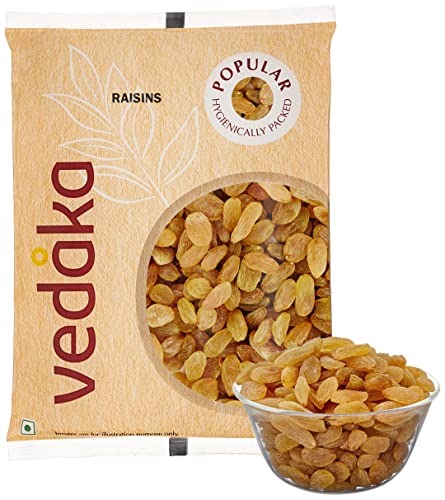 Vedaka brings to you high-quality regular-sized raisins with a sweet fruity taste and a soft chewy texture. They are packed in a food-safe polybag to keep them safe in the journey to your home. These raisins are packed in an integrated nuts and dried fruits unit and may contain occasional traces of other nuts and dried fruits. May contain an occasional stem or stalk store in a cool, dry place in an airtight container and preferably refrigerate after opening.
