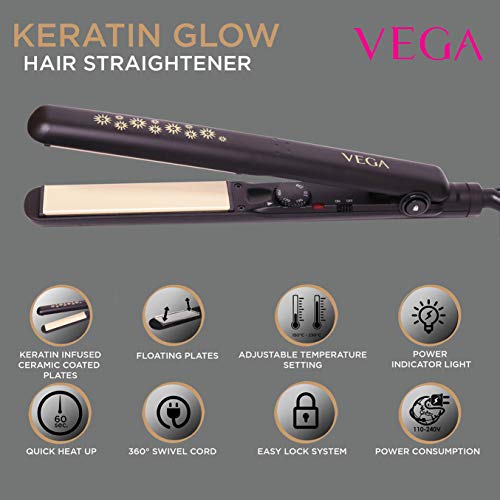 Specification: VEGA Keratin Glow Hair Straightener With Keratin-Infused Floating Plates (VHSH-20)