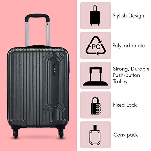Stylish design, Polycarbonate, Strong, durable push-button trolley Fixed lock, Convipcak