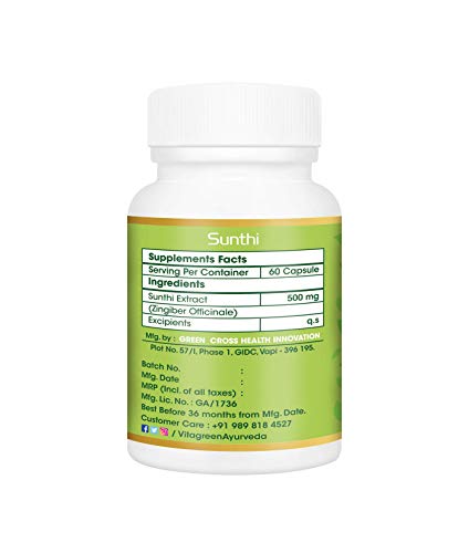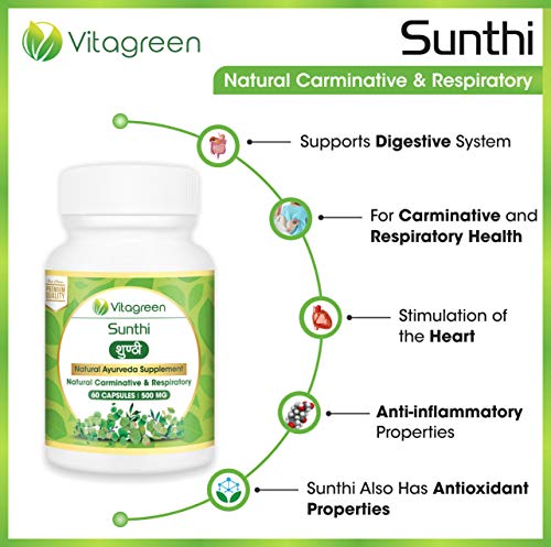 Specification: SUNTHI 500 mg, Pack Of 3 (180 Capsules ) For Carminative & Respiratory Health , 100 % Natural, Ayurveda Herb, Health…