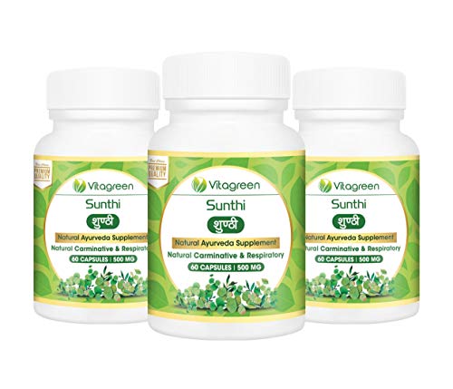 SUNTHI 500 mg, Pack Of 3 (180 Capsules ) For Carminative & Respiratory Health , 100 % Natural, Ayurveda Herb, Health…