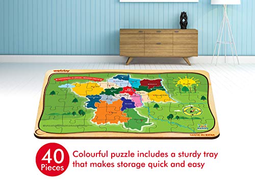 The Webby national capital region (NCR) map wooden jigsaw puzzle has 40 unique pieces. Treat your kids with this wooden puzzle completely free from hamrful plastics. There is an exquisite wooden tray to make the puzzle on. The curvy shape of the puzzle draws the attention of the kids towards it.