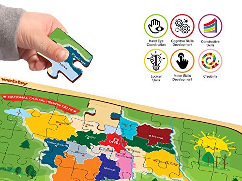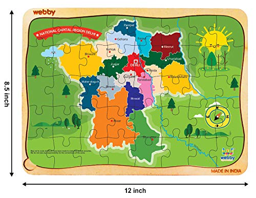 Ideal for children between ages 3 to 6, Webby National Capital Region (NCR) Map Wooden Jigsaw Puzzle provides a rich and live experience to the kids reducing screen time